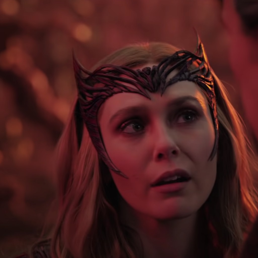 Given that this is a multiverse movie with characters who hop into different realities, the conversations had in the film inevitably move into wistful territory at points as characters begin to think about the choices they have made and whether or not their lives are better in another reality. The question, “Are you happy?”, pops up a lot in this movie, and that’s a very good thing because I feel it gives the film the closest thing it has to a theme: “The grass is always greener on the other side.” That’s a universal feeling that we can all appreciate that is magnified to the nth degree by the ability to glimpse what life is like on that other side. Character-wise, it ties into Stephen Strange’s emotional state (with a deeply impactful moment at the beginning of the film brought me back to one of the first scenes of the Hawkeye series, where our hero glimpses graffiti that says “Thanos was right”) and his relationship with Rachel McAdams’ Christine Palmer. It also informs Wanda/The Scarlet Witch’s actions as she tears through multiple universes looking for *SPOILERS* her children. Side note, there has been some talk as to whether or not you need to have seen the TV shows to understand what is happening in this movie, and while some may say it’s not necessary as they do briefly run through the events of WandaVision, I definitely don’t think I would’ve been able to get on board with much of this plot and Wanda’s characterization here (which is messy at best) had I not seen it. Yes, Wanda is in search of her children (whom she created from her own mind but had to give up at the end of WandaVision) and, having been infected by the mystical spellbook, The Darkhold, in her search for a way to get them back (not the best explanation for her radical change in personality, but I can go along with it), has gone murderously mad as she’s begun sending demons after a young girl from another dimension named America Chavez, who has the power to open portals between universes, to kidnap her and steal her powers (likely killing America in the process) in order to get them back.